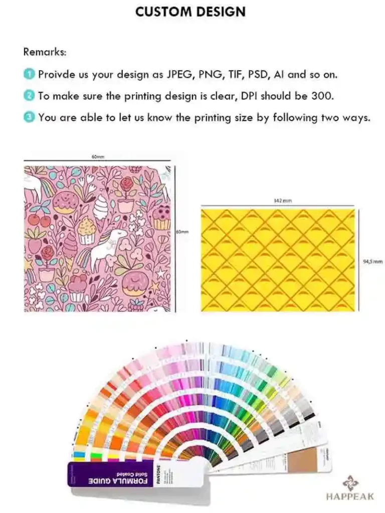 We offer full customization for your designs. Please follow the steps below to ensure we can fulfill your requirements: